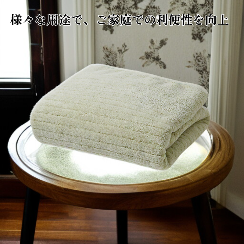 ● 大判サイズなので、全身をしっかり包み込むことができ、バスタイムやリラックスタイムに最適です。